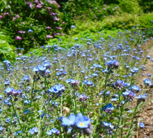 他にもバラ園や一面に広がるワスレナグサなど、ずっといても飽きないくらい見どころ満載のガーデンです。あちこちにある彫刻作品もポイントで、アートと庭園の調和を楽しんだり、子どもは彫刻によじ登ったりと、楽しみ方は様々。