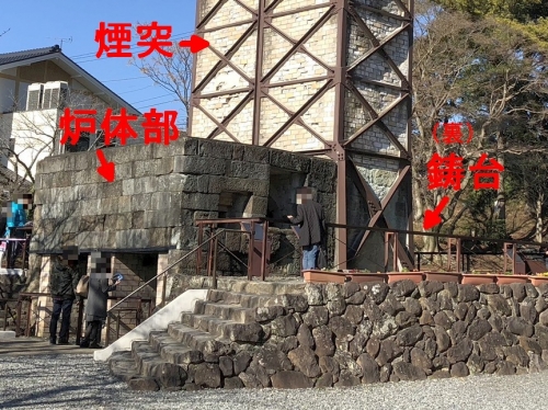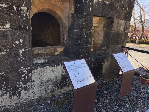 それぞれの場所には、詳しい説明パネルが置かれています。この炉体部の石は伊豆でとれた石から作られているそうです。