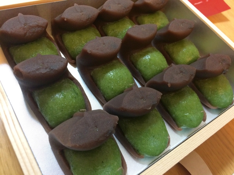 じつはこのお餅、リーゼントで有名な某ロックバンドのようだと話題となり、「リーゼント餅」とも言われています。そもそも福太郎は、三嶋大社で行われる「お田打ち(田祭り)」で演じられる、狂言形式の神事で登場する人物の名。その福太郎をお餅に見立てており、あんこは「烏帽子」の形なのだそう。