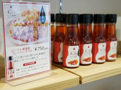 オリーブ車海老の西京味噌漬け。その他にも、沢山のオリーブ車海老や塩製品が並んでいました。ぜひ、お気に入りのお土産を見つけて下さいね。