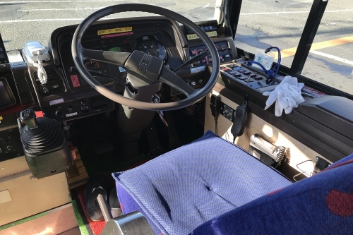 ナンバープレートの数字は2100形にちなんでおり、1階の運転席後ろにある客席は2100形の座席で使用されているものと同じ生地が使われているほか、カーテンも2100形で使用されているカーテンが使われています。ちなみに1階への乗車はできませんが、記念撮影等で座る事は可能です。