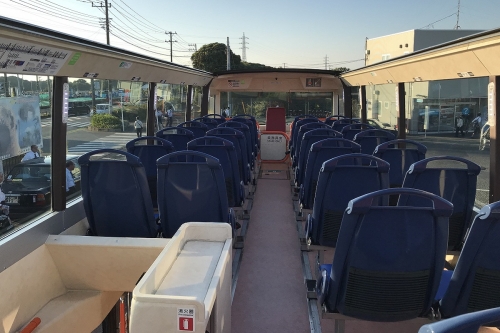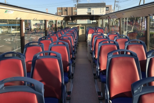 バスに乗車すると、普段は見上げていた看板と同じ目線になったり、景色を見下ろす形となったりするほか、普段は他の車などで遮られる景色もほとんど遮られなくなり、遠くまで見渡す事ができます。
