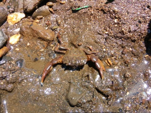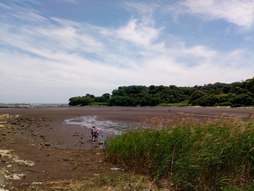 【11:00】徒歩で江奈湾の干潟へ。カニやハゼと存分にたわむれて❤