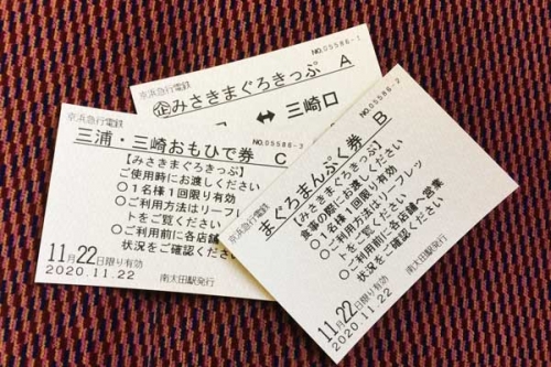 みさきまぐろきっぷは京急が発行しているチケットで、電車+バスの乗車券1枚、加盟店で利用できる食事券1枚、施設利用券1枚が含まれています。京急の自動販売機か窓口で購入でき、当日限り有効です。料金は出発駅によって変わりますが、三崎から遠いほどお得です。