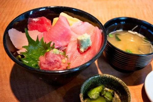 散歩の後はお待ちかねのまぐろ料理!どこに入ろうか迷ってしまいますが、この日は三崎港近くの「鮮味楽」を訪れました。みさきまぐろきっぷを利用した場合、メニューは決まっている店と選べる店があるようですが、どれも文句なしの絶品です。さすが三崎!厚みのあるトロけるまぐろがたまりません。