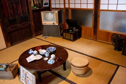 チャッキラコ・三崎昭和館は昔懐かしい庶民の家を再現した博物館で、建物は明治から昭和にかけて建てられたそうです。三崎の町は古い建物が多いですが、ここでは室内をじっくり見学できるので、お散歩ついでに立ち寄ってみると面白いでしょう。