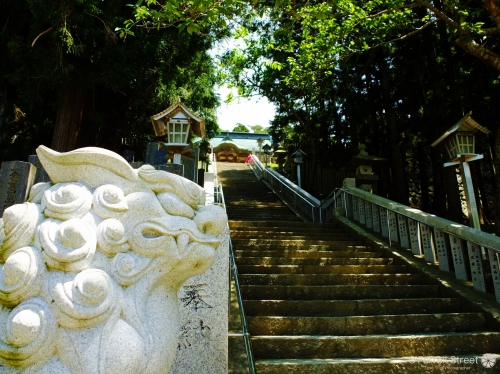 赤い鳥居をくぐると、両脇に杉の古木が立ち並ぶ表参道となります。ゆっくり歩いて7~8分で境内に到着です。境内のほぼ中央に拝殿まで続く石段があるので、がんばってもうひと登りしましょう。