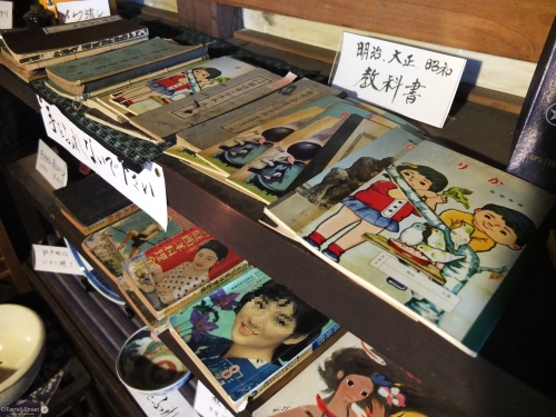 明治時代に本屋さんをしていたそうで、教科書なども大量に保存されています。生活雑貨が当時の値札をつけて並んでいるのも、時代が感じられます。奥様が、古いオルガンで演奏をして下さることも。