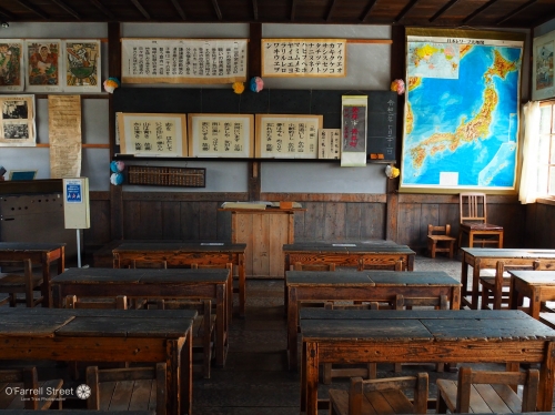 内部には、校長室や当時の教室が再現されているほか、戦前の教育についての資料や、戦前からの教科書などが展示されていて、見ごたえがあります。歩くときしむ廊下や、畳敷の家庭科室、建築当時のままのガラス窓のゆがみ、だるまストーブなど、歴史を感じさせてくれるものが、たくさんあります。