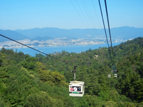 厳島神社の神域として、古くから人々に信仰されてきた霊峰。手つかずの原生林が残り、1996年には厳島神社とともに世界遺産に登録されました。ハイキングとして徒歩で登ることもできますが、体力に自信がない方や初めて訪れる場合はロープウェイを利用するのがおすすめ。山頂からは瀬戸内海の美しい絶景を楽しめます。