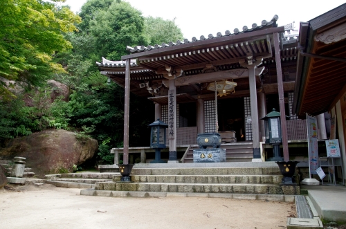 大同元年(806年)に空海(弘法大師)が開基し、100日間の修行を行ったことで知られるお堂。宮島ロープウェー「獅子岩駅」から山頂に向かう途中にあります。弥山本堂の目前にある「霊火堂」は、806年に弘法大師が修法を行った際の霊火が、1200年以上たった今も「消えずの火」として燃えつづいている場所。広島平和記念公園の「平和の灯火」の火も、ここから採火されたそうです。またこの火にかけられている茶釜で沸かした霊水を飲むと、万病に効果がある、幸せが約束されるなどと言われています。