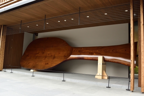 etto宮島交流館(宮島まちづくり交流センター)に飾られている、世界一大きな杓子です。その大きさは長さ7.7m、重さ2.5tで、杓子の発祥地であり特産品でもある宮島杓子を後世に引き継いでいくため、昭和58年に2年10ヶ月の歳月をかけて制作されました。