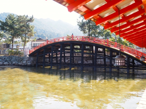 ここでは真正面に大鳥居をみることが可能です!干潮時は海に浮かぶ景色にはなりませんが、海に浮かぶ厳島神社の大鳥居は、干満は関係なく日本三大鳥居の1つ。厳島神社といえば大鳥居と言っても過言ではないほど、とても有名ですよね。混んでいる時は、写真を撮るために列ができるほどです。