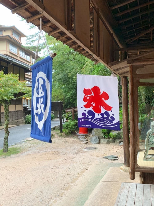 岩惣は、宮島でも数少ない温泉宿です。明治18年に掘られた井戸水を一部、水まわりに使用していたところ、「肌がつやつやする」と先々代の女将さんが気がつきました。その発言をきっかけに調べてみると、温泉であることが判明し、「若宮温泉」と呼ばれるようになりました。