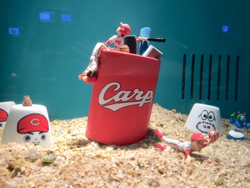 2018年9月30日(予定)までは地元広島の球団「広島東洋カープ」の応援の一環として、カープグッズが使われた「カープ応援アレンジ水槽」や「カープ応援壁面」、「カープ応援フォトスポット」が展示されており、賑やかで見ていて楽しい気分になれます。
