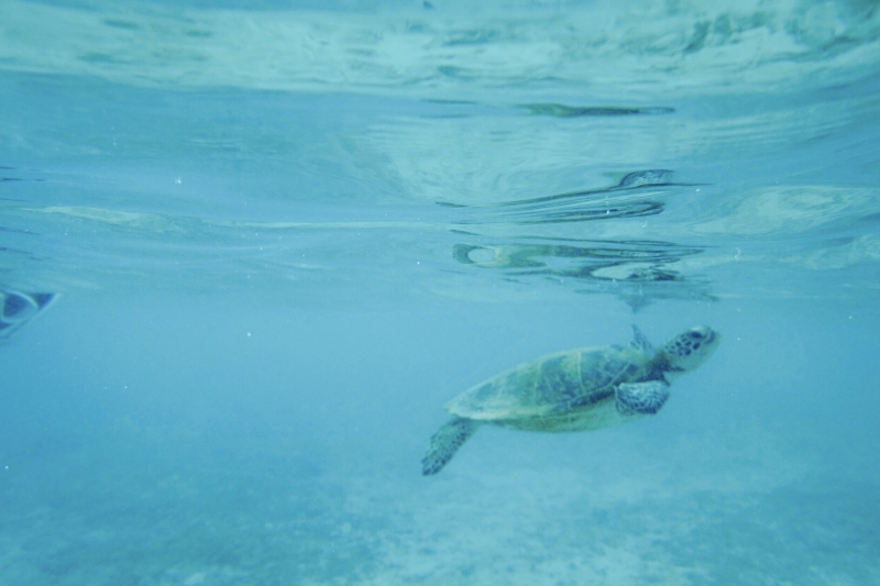 ウミガメの悠々と泳ぐ姿はいつまでも見ていられます。時々息継ぎのために水上に一瞬顔を出すのですが、その姿がまたかわいい!ウミガメだけでなく、小魚や『ファインディング・ニモ』でおなじみのクマノミもいるので、ぜひ訪れてみてください。