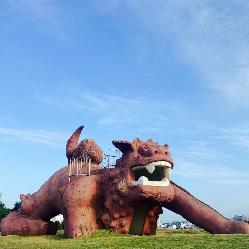 市街地から車で約10分ほどの場所にある公園。ここにはシーサーの形の大きな滑り台があり、子供たちが喜んで遊んでいます。また穴場の展望スポットとしても知られており、展望台からは伊良部大橋などの絶景が見られます。