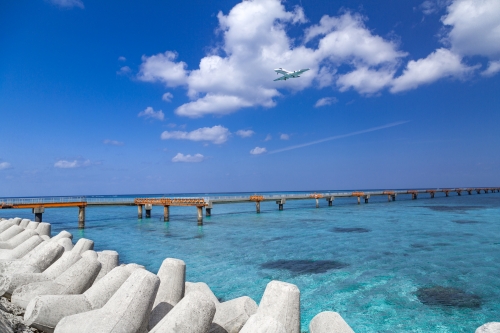 また誘導桟橋に沿って空港の北側から着陸する飛行機が大迫力!2019年にみやこ下地島空港として旅客用の空港として開港したことに伴い、今までは見られなかった国際線の機体なども見られるようになりました。