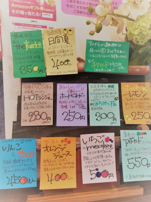 店内には手書きのメニューがズラリ…。どれも飲みたくなります!以下より、人気のドリンクに加えて、季節のおすすめドリンクを紹介します。