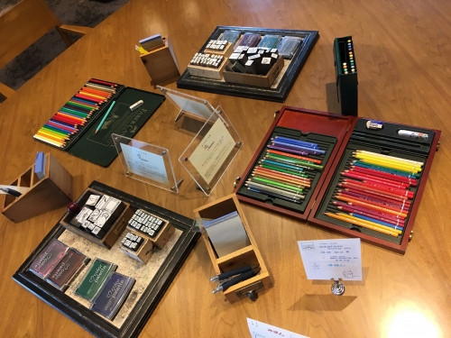 万年筆や色鉛筆、ペンなどの中からお好きな筆記具を選んで、