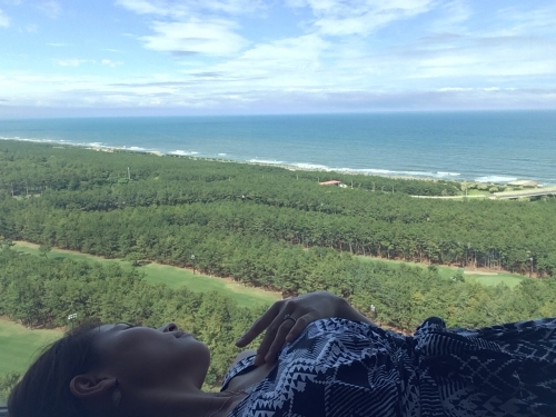 手前に広がるのが、防砂林を一部切り開いて作られたゴルフ場「トム・ワトソンゴルフコース」です。