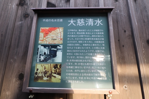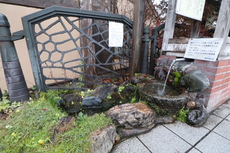 【4】の青龍水とともに「平成の名水百選」に選ばれている湧水地です。明治時代初期に大慈寺(だいじじ)境内の湧水から木管で水を引き、原形が造られました。その後、何度か工事を経て現在は井戸に変わっています。
