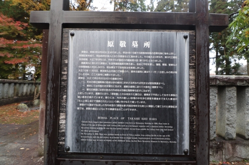 大慈寺(だいじじ)の敷地内には、平民にして初めて内閣総理大臣(第19代)になった原敬の墓所があります。原敬は盛岡市出身の政治家で、自由と平和を愛し、藩閥・軍閥・官僚などの特権階級と対決しながら政党政治を実現した人物です。
