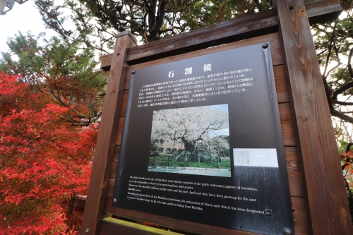 庭石の割れ目に偶然桜の種が飛んできて芽を出し、成長とともに石の割れ目を押し広げていって出来たものと言われています。筆者が見たときは桜のシーズンではありませんでしたが、それでも大迫力でした。