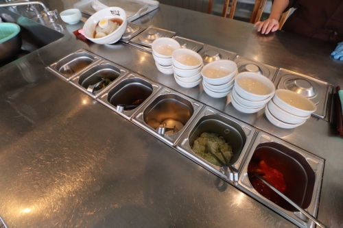 あとは冷麺に必要なトッピングをして完成です。辛いのがお好きな方は、特製のキムチ(大根とキャベツを利用)が美味しいのでおすすめですよ。
