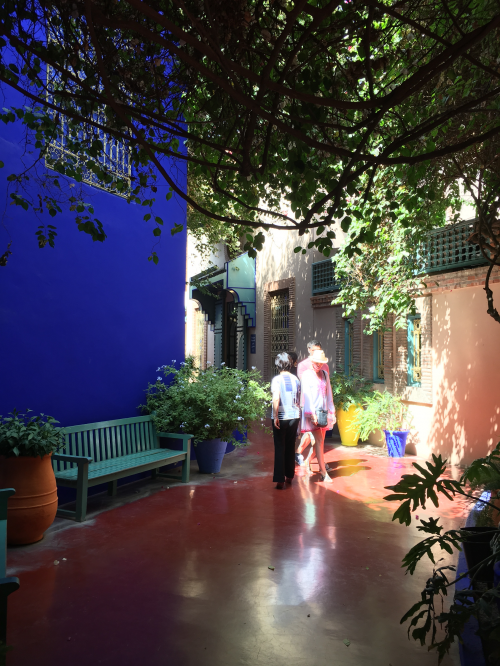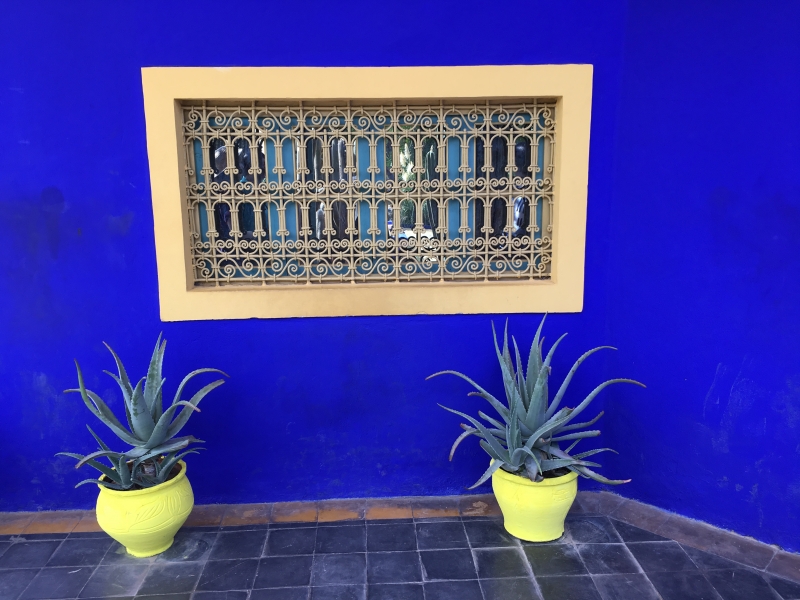 マラケシュ=メナラ国際空港から車で15分のところにあるマジョレル庭園。フランス人画家ジャック・マジョレル氏が世界各地の植物を収集して作り、その美しさを愛したデザイナーのイヴ・サンローラン氏が彼の死後買い取って改修したことで有名で、モロッカンブルーを基調にできています。