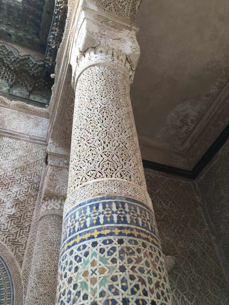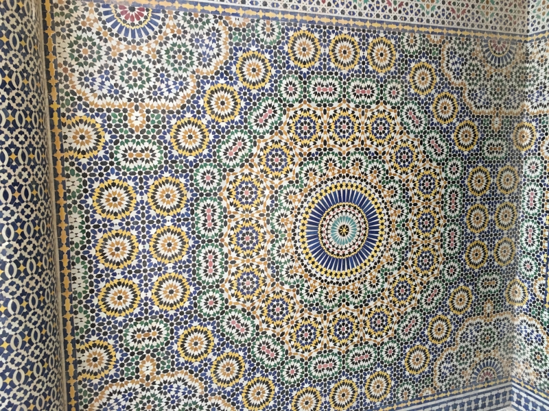 一歩入ると内装の凄まじさに身震いする程。壁に嵌められたタイルは一つ一つ職人が手作業で組み合わせたモザイクで、絵柄も全て手描き。彫物も手彫りでできています。全方向の掘りの深さが均等になるよう掘り進め、モザイクを裏返した状態で組み立て、接着する時に表面が崩れないよう正確にひっくり返す、気の遠くなるような作業の積み重ねは正に職人技。