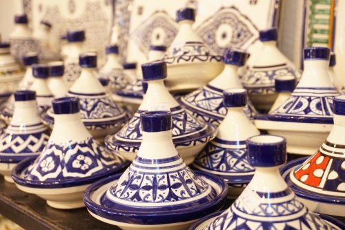 最近、日本の雑貨屋でも見かけるバブーシュは羊やヤギの革で作られたモロッコの伝統的な履き物です。バブーシュ市場では、壁一面が色とりどりのバブーシュで埋めつくされています。ひとつひとつ職人の手作りなので、刺繍の感じや色の出方がどれも微妙に違うので、じっくり悩んでください。
