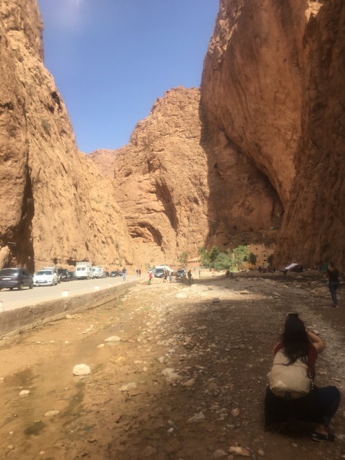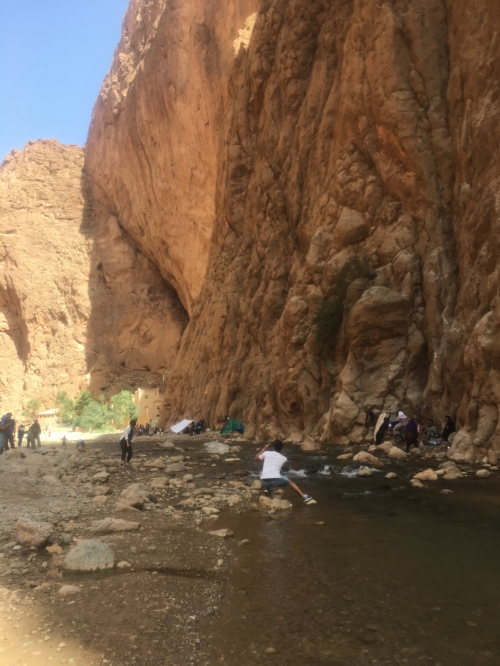ティネリールのオアシスの散策を終えて車に戻り、車を走らせるとすぐにトドラ渓谷に到着します。トドラ渓谷は水も綺麗で気持ちいいです!靴を脱いでしばしリラックスしましょう。30分ほど渓谷に滞在したら、サハラ砂漠を目指してまた移動を開始します。トドラ渓谷を離れる前に、オアシスを案内してくれたガイドさんにチップ(任意)を渡します。