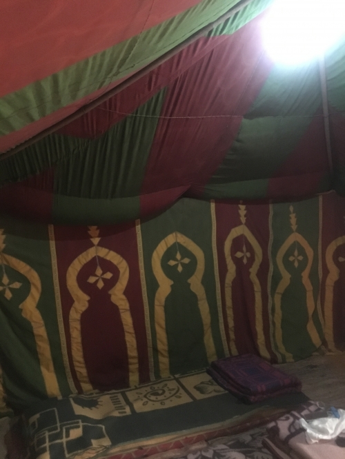 キャンプの部屋は「あんた達3人だからこっちね!」と適当な感じで割り振られます。テントの中にはもちろんエアコンは無く、少し蒸す感じがします。テントに荷物を置いたら、夕食まで砂漠散策に出かけましょう!