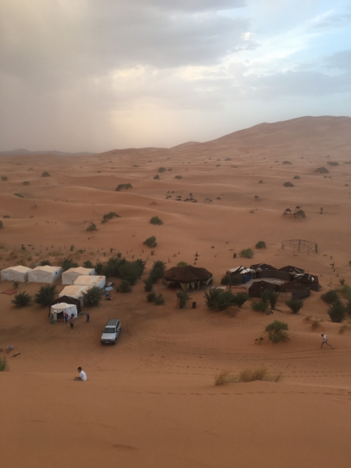 2日目の夜、ベルベル人スタッフが「1人100DH(約1,200円)払えば、明日の朝、出発したホテルまでラクダじゃなくて車で戻ることもできるよ。」と提案してきました。Sabaku toursでは、キャメルライドに参加した時間によっては、行きは車でキャンプ場まで来る人もいるようです。その人たちは帰りにキャメルライドをすることになっているので、代わりに車で帰らせる人を探しているようです。