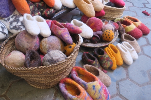 手作りで温かみのある羊毛のフェルト製品もあります。スリッパや帽子、ハンドバックなどが売られており、お店では職人さんが作っているところも見学できます。