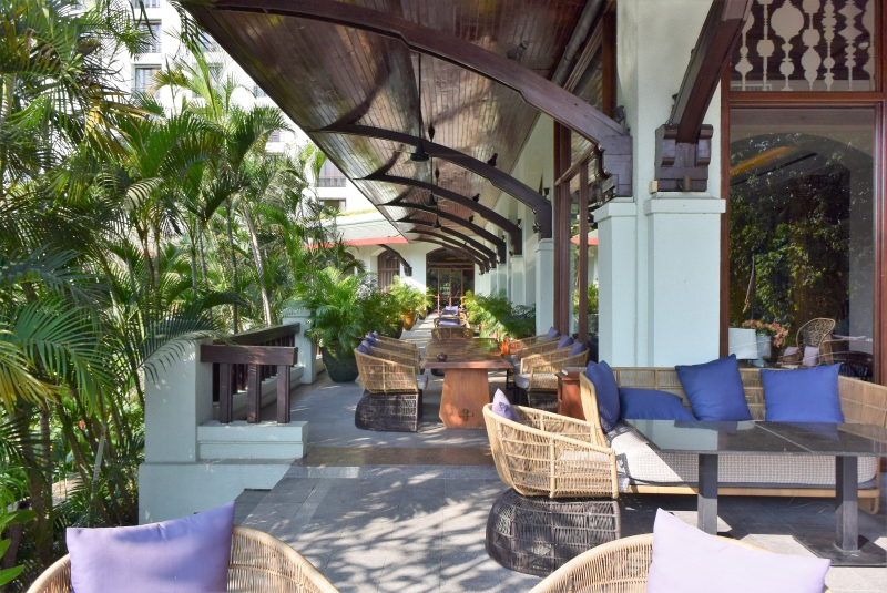「チャトリウム・ヤンゴン」には、6つのレストランやバーがあり、中華、和食、洋食、タイ料理などをいただくことができます。朝食は、写真右の「ジ・エンポリア・レストラン」もしくは、プールサイドにていただくことができます。