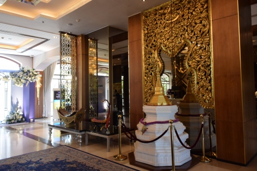 まずは、ホテルの「顔」ともいえるロビーです。ホテルのロビーというと、木目調や大理石が一般的ですが、「チャトリウム・ヤンゴン」のロビーは、ゴールド一色!エキゾチックなアジアの雰囲気に圧倒されます。