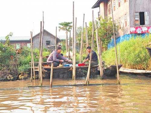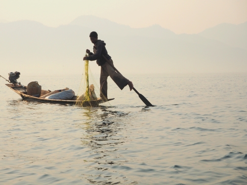 まず目に入るのがここインレー湖に住むインター族の漁師。小さい船に片足で立ち、船を漕いでいる姿を見ることができます。インレー湖を象徴する景色としても有名です。