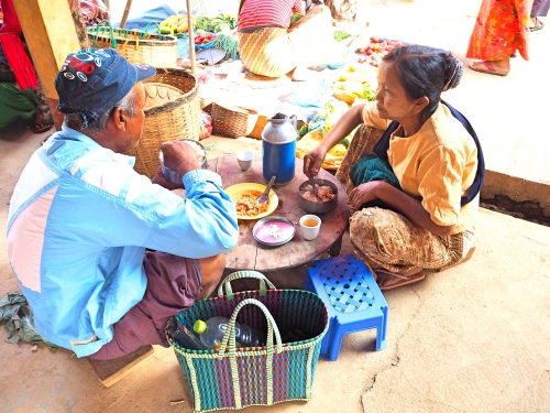 インレー湖に住む人々の貴重なお買い物場所になっている「五日市」。5日に1度の周期で日替わりで開催地が移動するので「五日市」と言うそうです。