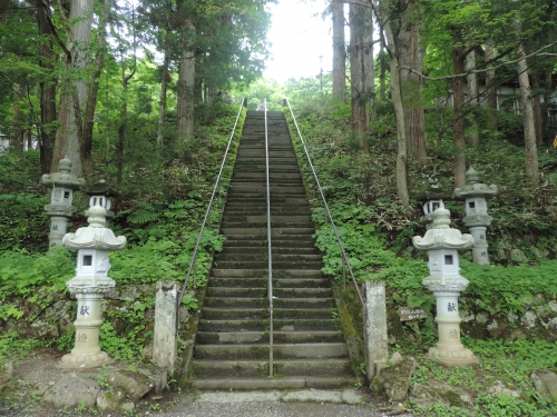 戸隠神社の御本社で、御祭神として天手力雄命(あめのたちからおのもこと)がお祀りされています。五社の中で一番奥にあるお社で、鳥居からお社までは杉並木の参道を約40分程かけて登っていきます。開運、五穀豊穣、心願成就などに御神徳があるとされ尊信されています。