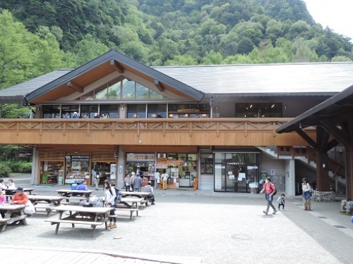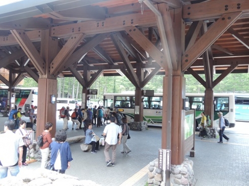 かっぱ橋の手前にある「沢渡」「平湯温泉」からのバスの発着所となるターミナルで、上高地散策の拠点です。ターミナル周辺にはおみやげ店やホテル、食堂やインフォメーションなどがあります。