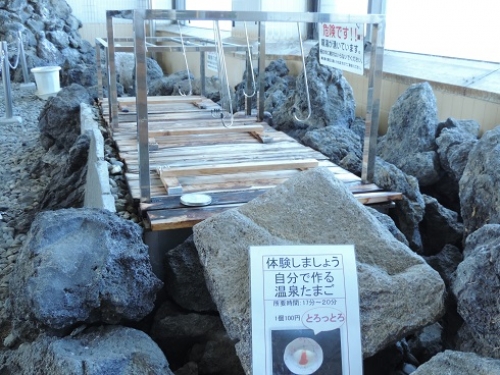 そしてもう一つのシンボルが温泉街の中にある麻釜(おがま)です。湧き出る高温の温泉で地元の人たちが野菜や卵を茹でる風景は、野沢温泉ならではの風景です。