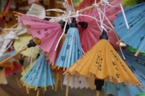 ここで忘れないで頂きたいのが、運が開くと言われている「傘おみくじ」。珍しいことと、かわいらしさから大人気です。色は数種類ありますが、何色が出るかは時の運?