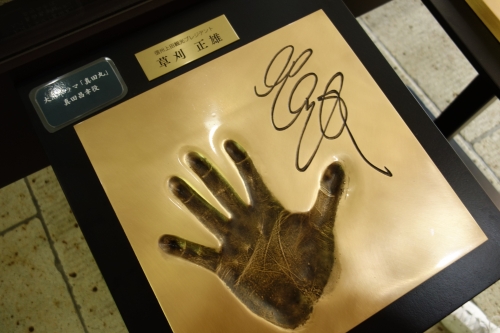 もう一つ上田城跡公園内で立ち寄っていただきたいのが、上田市立博物館。上田城の歴史について分かりやすく知ることができるスポットです。大河ドラマで、真田昌幸を熱演された草刈正雄氏の手形もあります。