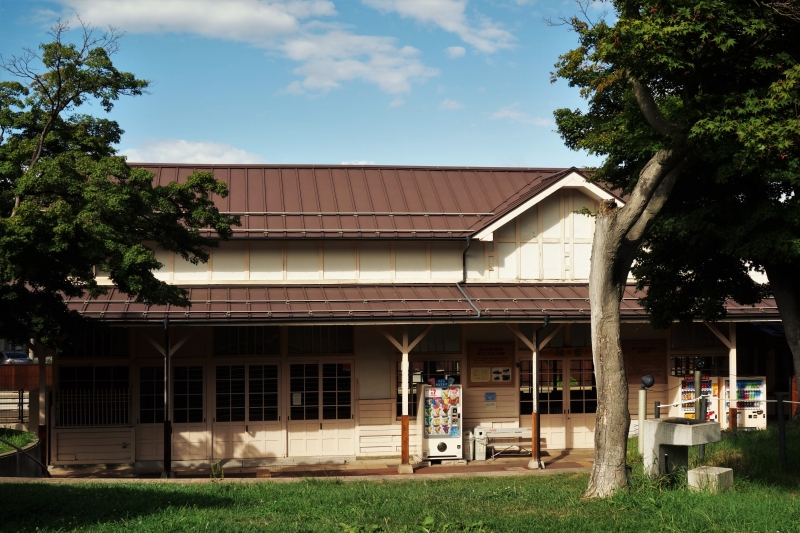 急行列車の乗り入れにより、新駅舎が建設され、旧駅舎は交流室や展示室を兼ねた「楓の館」としてリニューアルしました。その反対側には「楓の湯」があり、立ち寄り湯(有料)や足湯(無料)も設置されています。