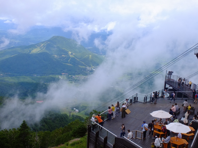 湯田中温泉より車で20分ほどの場所にあるスキー場「竜王マウンテンパーク」。ここに今話題のSORA terraceがあります。標高1,770mの急斜面に建てられた雲の上の「SORA terrace」では、気象条件が合えば、幻想的な雲海が見られると人気をよんでいます。