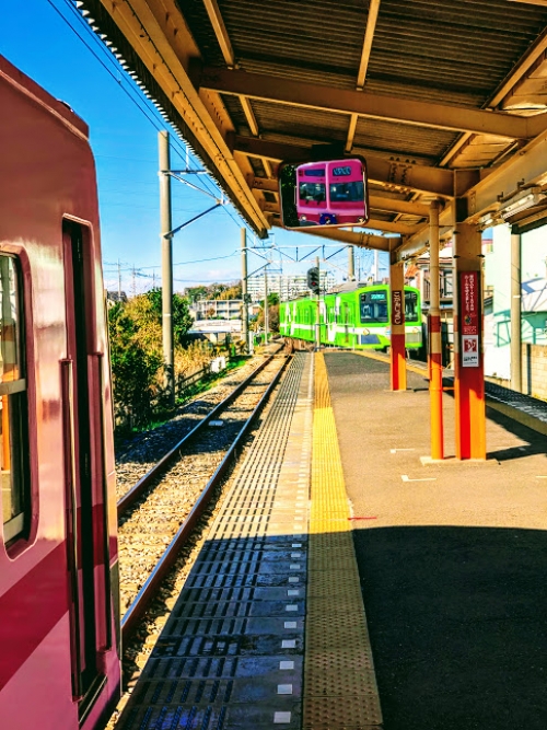 途中の駅のベンチにはかわいい手編みらしき座布団が置いてありました。上の写真は鰭ヶ崎駅で撮影したものですが、鰭ヶ崎駅以外の駅でも見かけることができる可能性もあるようです。寒い冬でもこんなうれしい心遣いに気持ちがあったかくなります。都心から近い場所にありながら、なんだかノスタルジックな旅気分に浸れちゃうんです。