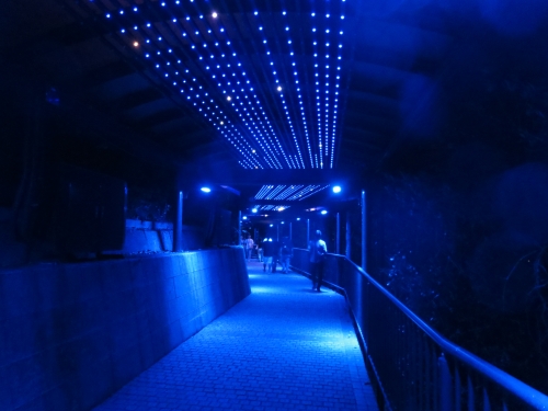 山頂へ向かうためにロープウェイに乗ったり光のトンネルをくぐったりしながら歩くと、ワクワク感が増しますよ。