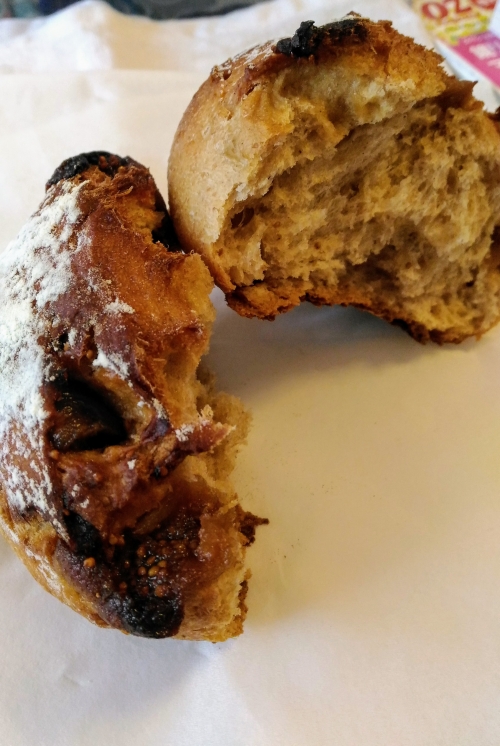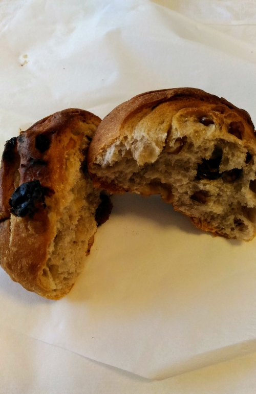 パンの外はしっかり、中はしっとりしていて、ドライフルーツやナッツ類がたくさん入っています。手作りならではの芳醇な香りとパンの弾力が食べごたえを感じさせます。大きさもちょうどよく、2~3個はぺろっと食べられます。